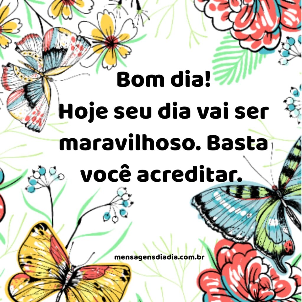 Bom dia! Hoje seu dia vai ser maravilhoso. Basta você acreditar.