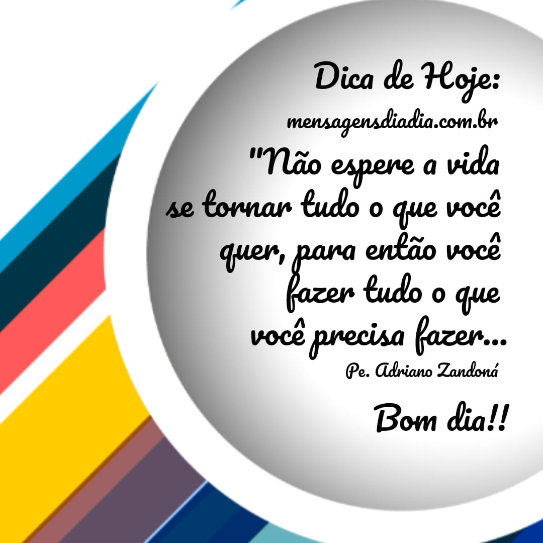 Dica de Hoje: Não espere a vida se tornar tudo o que você quer, para então você fazer tudo o que você precisa fazer…Bom dia!!