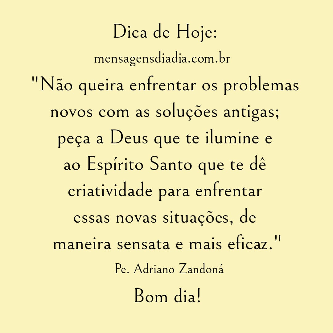 Dica de Hoje: Não queira enfrentar os problemas novos com as soluções antigas; peça a Deus que te ilumine e ao Espírito Santo que te