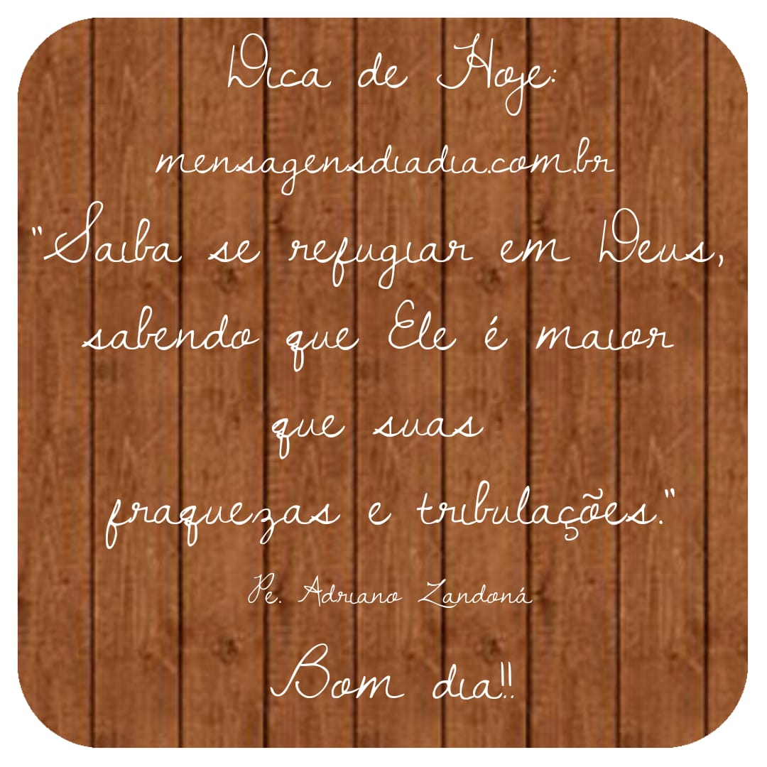 Dica de hoje: “Saiba se refugiar em Deus, sabendo que Ele é maior que suas fraquezas e tribulações.” Bom dia!! Pe. Adriano Zandoná