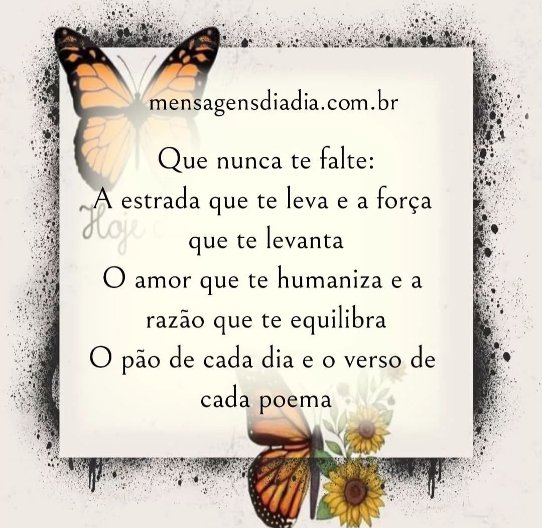 Que nunca te falte:A estrada que te leva e a forçaque te levantaO amor que te humaniza e arazão que te equilibraO pão de cada