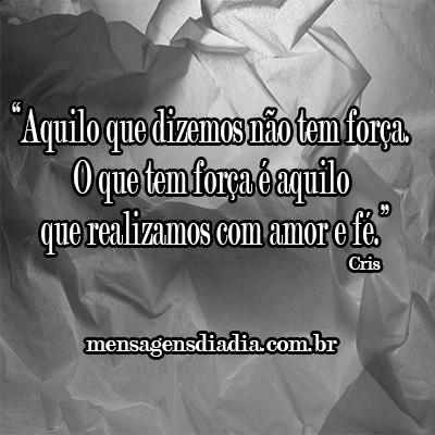 “Aquilo que dizemos não tem força. O que tem força é aquilo que realizamos com amor e fé.” Cris