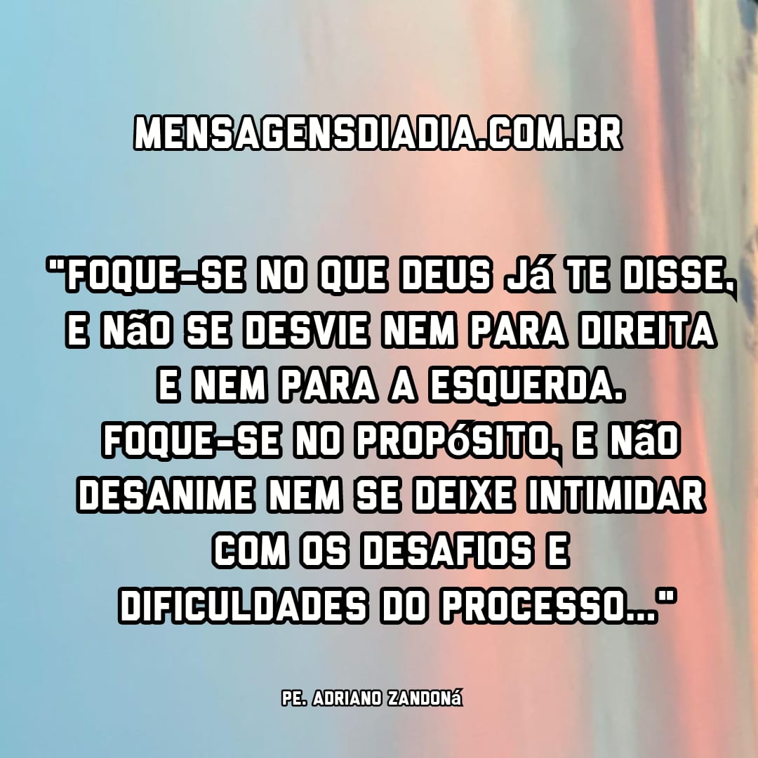 “Foque-se no que Deus já te disse, e não se desvie nem para direita e nem para a esquerda. Foque-se no propósito, e não desanime