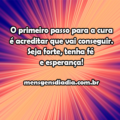 O primeiro passo para a cura é acreditar que vai conseguir. Seja forte, tenha fé e esperança!