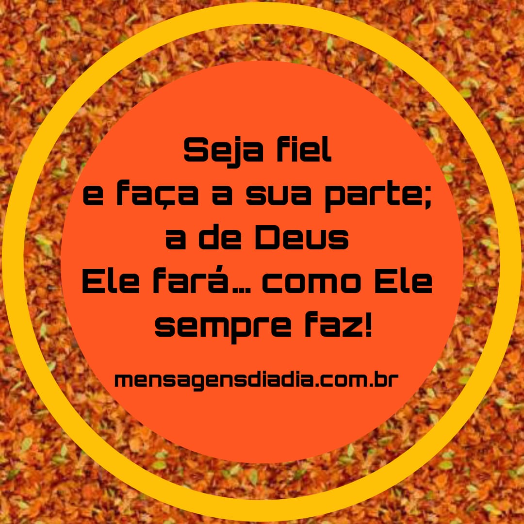 Seja fiel e faça a sua parte; a de Deus Ele fará……………………………como Ele sempre faz! Creia!