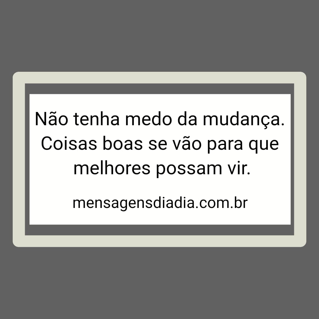Não tenha medo da mudança. Coisas boas se vão para que melhores possa vir. A vida tem o melhor para você! Acredite!!!
