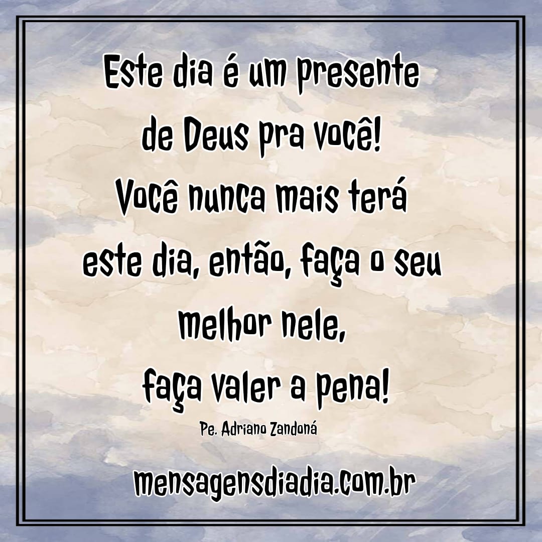 Este dia é um presente de Deus pra você! Você nunca mais terá este dia, então, faça o seu melhor nele. faça valer a pena!