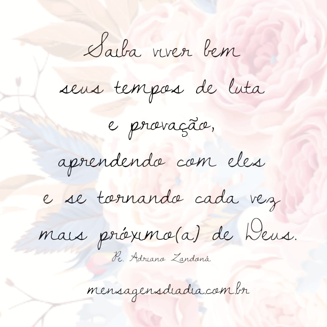 Saiba viver bem seus tempos de lutas e provação, aprendendo com eles e se tornando cada vez mais próximo(a) de Deus. Que possamos aproveitar esses