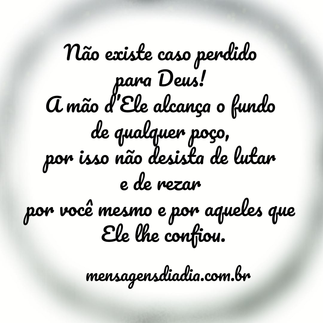Não existe caso perdido para Deus! A mão D’Ele alcança o fundo de qualquer poço, por isso não desista de lutar e de rezar por