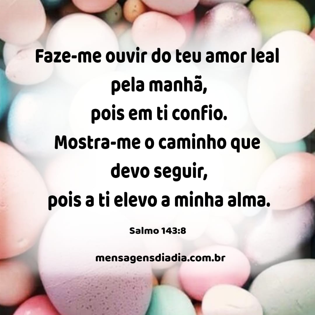 Faze-me ouvir do teu amor leal pela manhã,pois em ti confio.Mostra-me o caminho que devo seguir,pois a ti elevo a minha alma. Em um mundo
