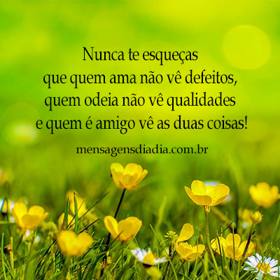 Nunca te esqueças que quem ama não vê defeitos, quem odeia não vê qualidades e quem é amigo vê as duas coisas! Prove!Não a deixe