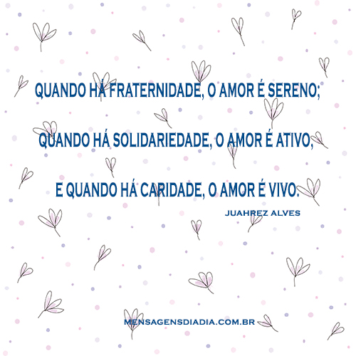 Quando há fraternidade, o amor é sereno; quando há solidariedade, o amor é ativo, e quando há caridade, o amor é vivo.