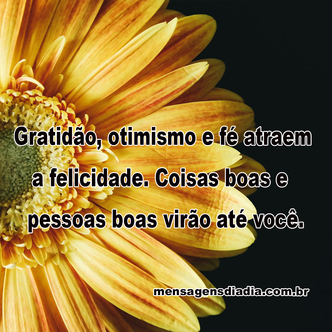 Gratidão, otimismo e fé atraem a felicidade. Coisas boas e pessoas boas virão até você.
