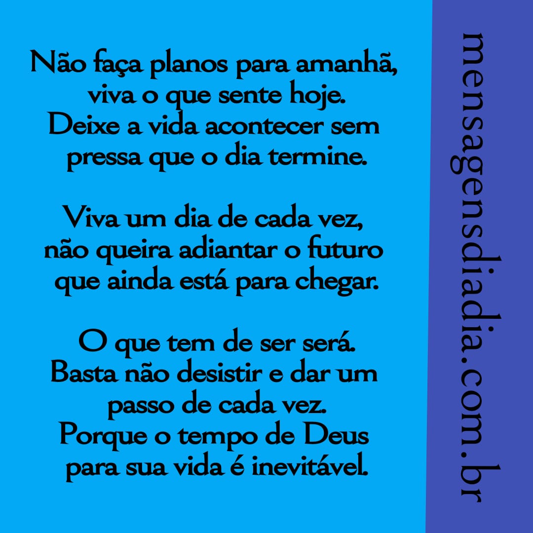 Não faça planos para amanhã, viva o que sente hoje. Deixe a vida acontecer sem pressa que o dia termine. Viva um dia de cada