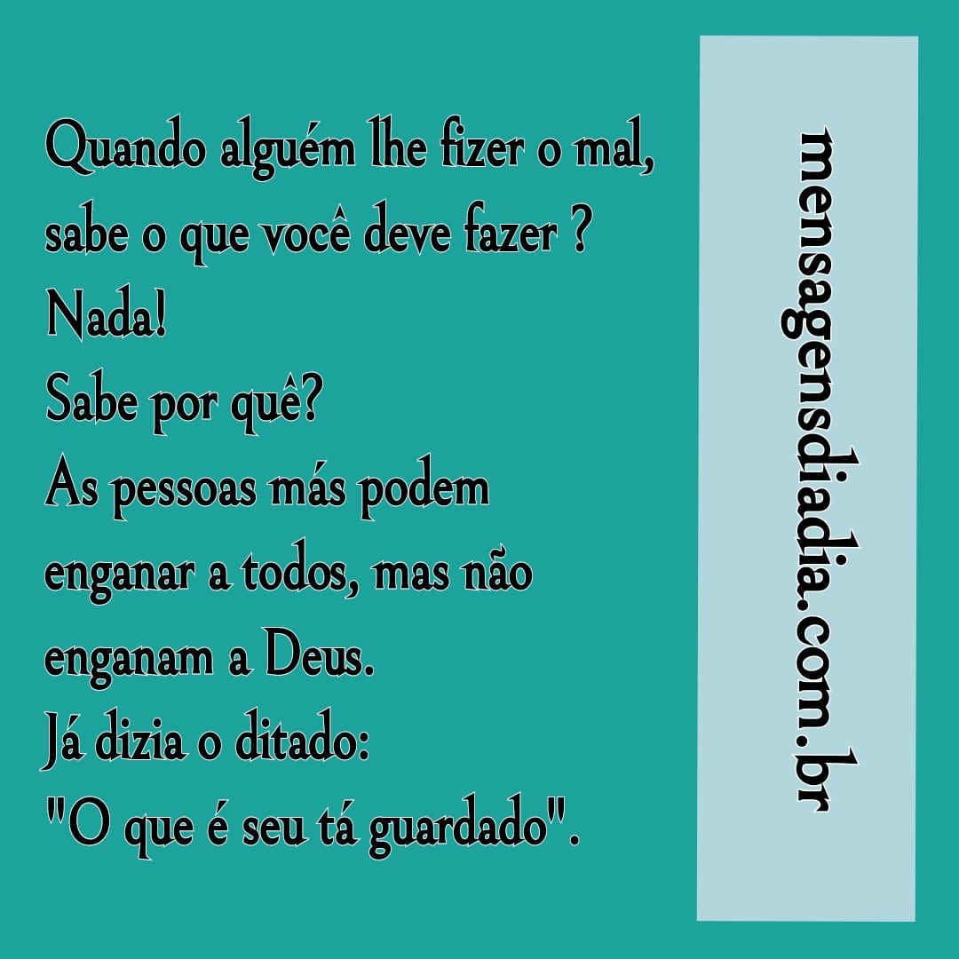 “Quando alguém lhe fizer o mal, sabe o que deve fazer? Nada! Sabe por quê? As pessoas más podem enganar a todos, mas não enganam