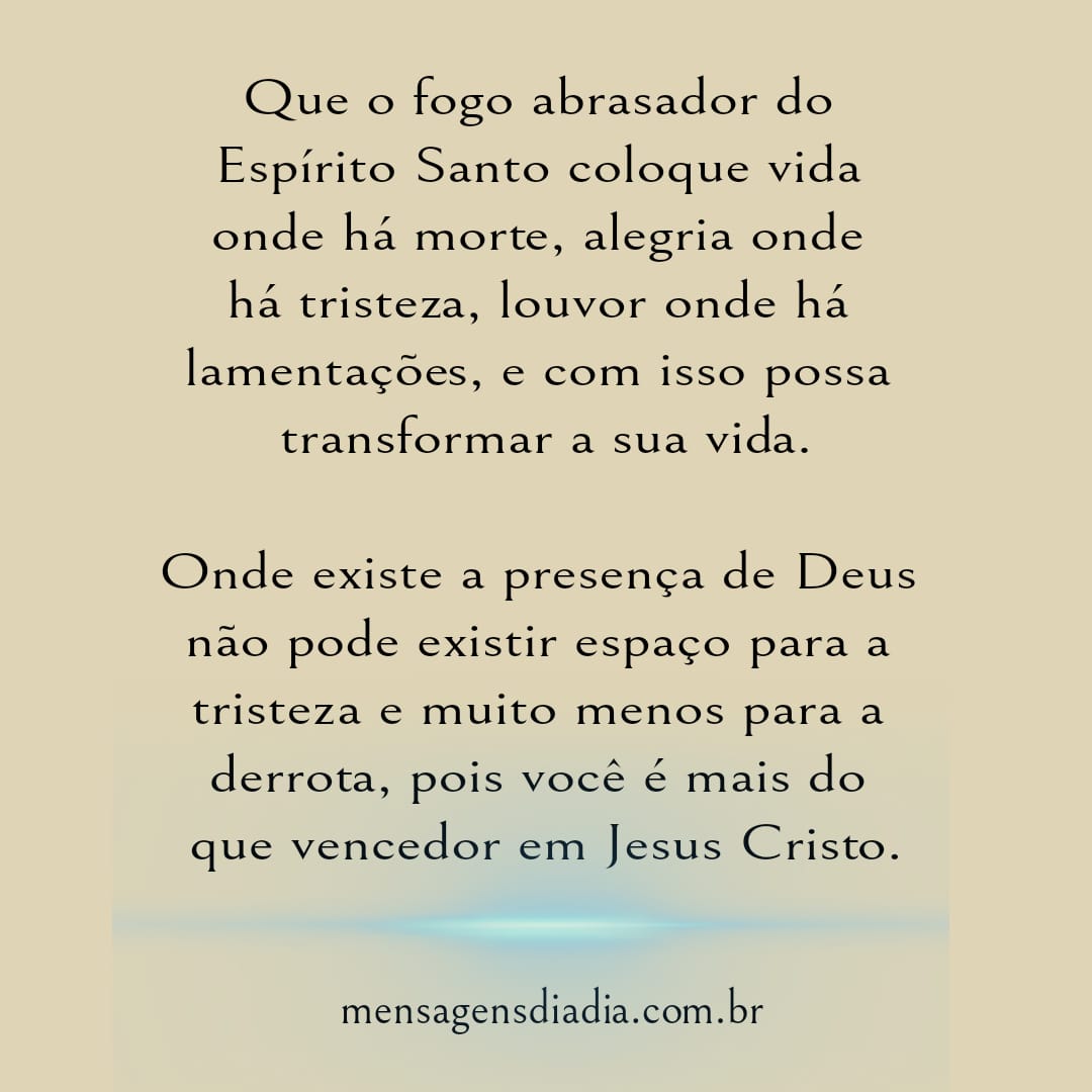 Que o fogo abrasador do Espírito Santo coloque vida onde há morte, alegria onde há tristeza, louvor onde há lamentações, e com isso possa transformar