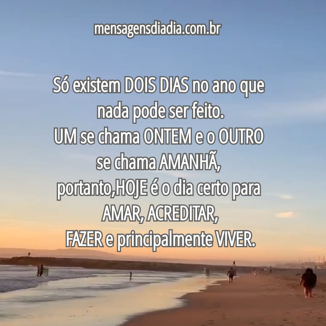 Só existem DOIS DIAS no ano que nada pode ser feito. UM se chama ONTEM e o OUTRO se chama AMANHÃ, portanto, HOJE é o