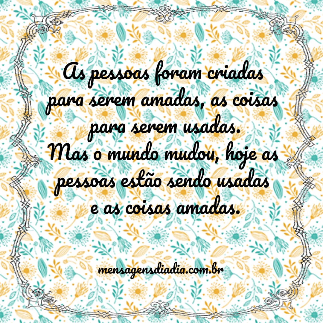 As pessoas foram criadas para serem amadas, as coisas para serem usadas. Mas o mundo mudou , hoje as pessoas estão sendo usadas e as
