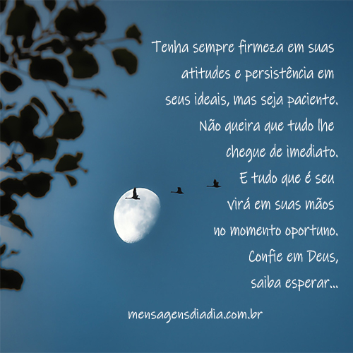 Tenha firmeza em suas atitudes e persistência em seus ideais, mas seja paciente. Não queira que tudo lhe chegue de imediato. E tudo que é