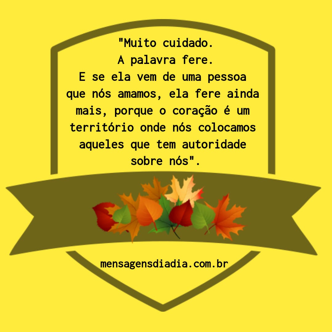 “Muito cuidado. A palavra fere. E se ela vem de uma pessoa que amamos, ela fere ainda mais, porque o coração é um território onde