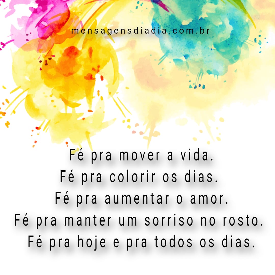 Fé pra mover a vida. Fé pra colorir os dias. Fé pra aumentar o amor. Fé pra manter um sorriso no rosto. Fé pra hoje