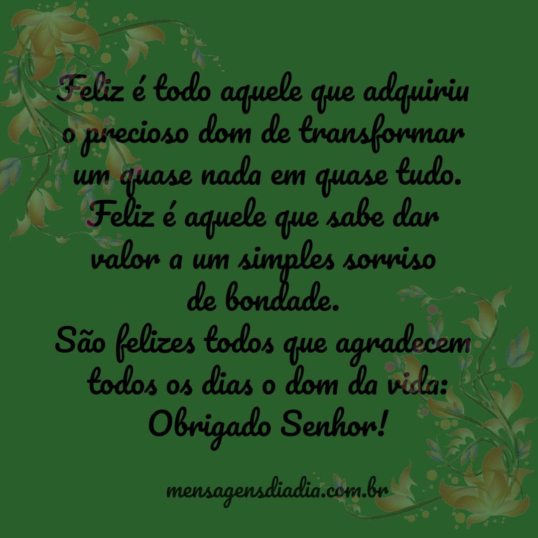 Feliz é todo aquele que adquiriu o preciso dom de transformar um quase nada em quase tudo. Feliz é aquele que sabe dar valor a