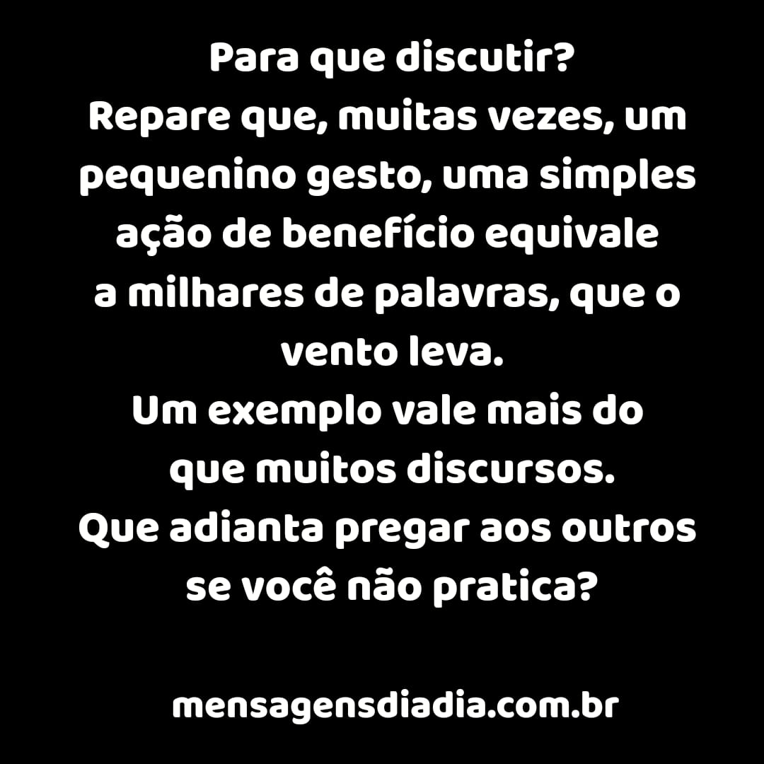 Para que discutir? Repare que, muita vezes, um pequenino gesto, uma simples ação de benefício equivale a milhares de palavras, que o vento leva. Um