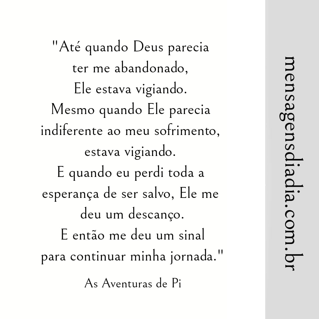 “Até quando Deus parecia ter me abandonado, Ele estava me vigiando. Mesmo quando Ele parecia indiferente ao meu sofrimento, estava vigiando. E quando eu perdi