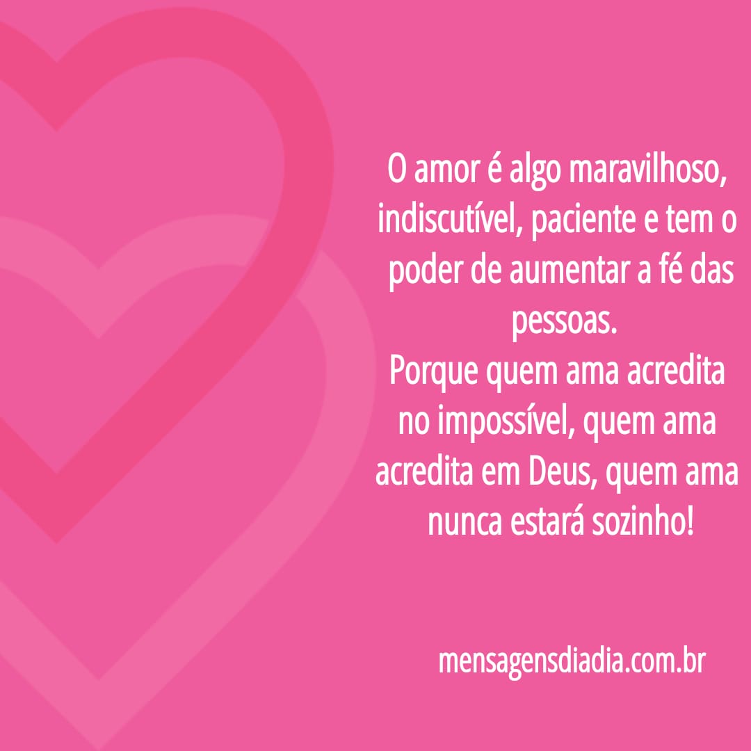O amor é algo maravilhoso, indiscutível, paciente e tem o poder de aumentar a fé das pessoas. Porque quem ama acredita no impossível, quem ama