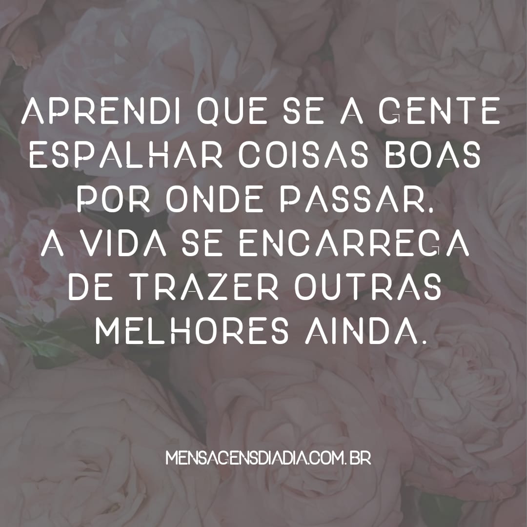 Aprendi que se a gente espalhar coisas boas por onde passar. A vida se encarrega de trazer outras melhores ainda.