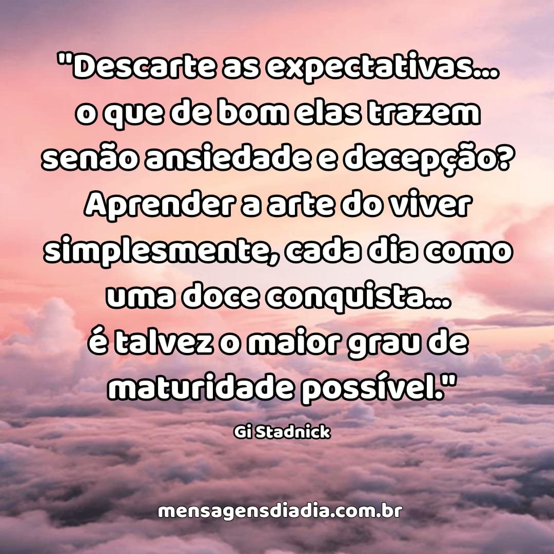 “Descarte as expectativas… O que de bom elas trazem senão ansiedade e decepção? Aprender a arte do viver simplesmente, cada dia como um doce conquista….