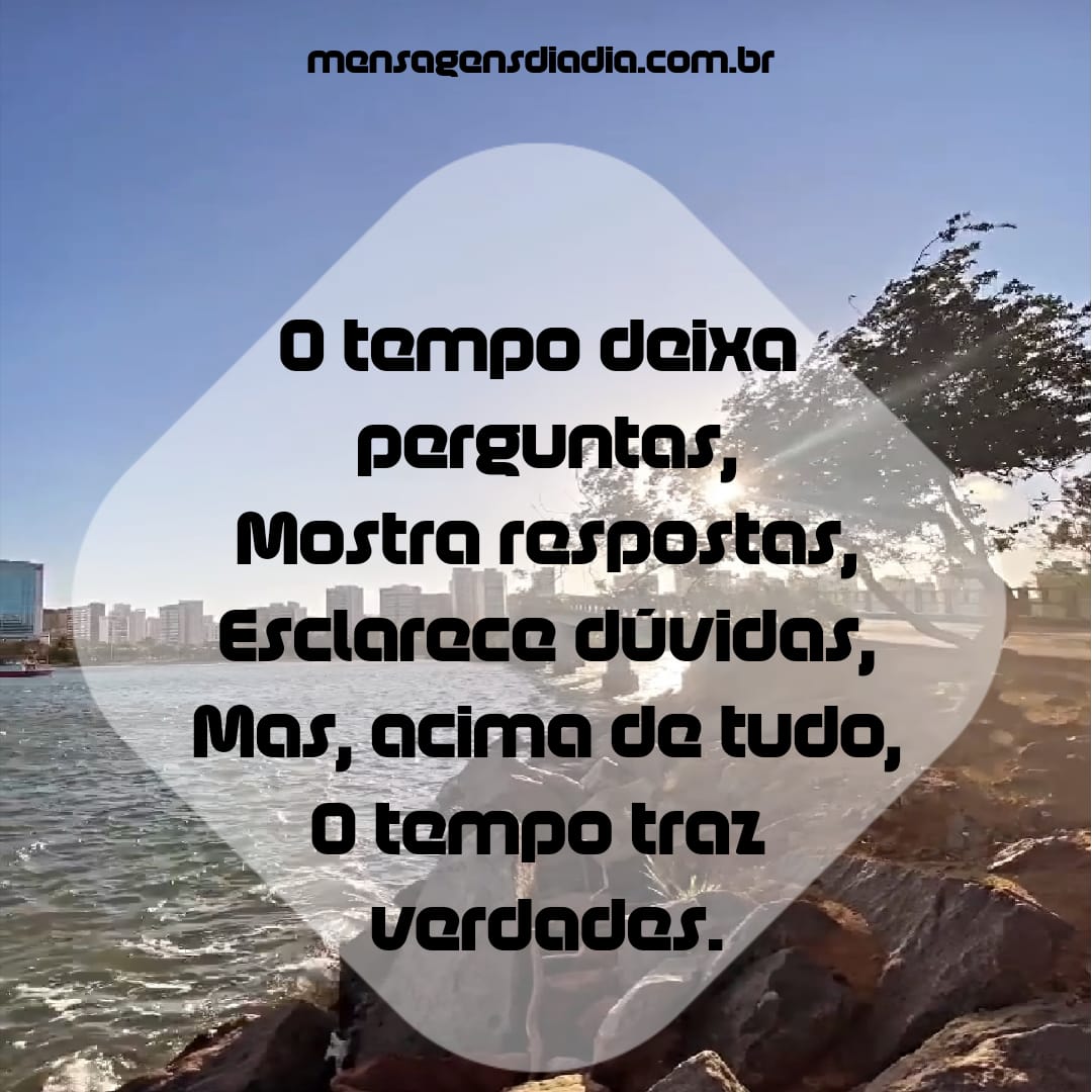 O tempo deixa perguntas, mostra respostas, esclarece dúvidas, mas acima de tudo, o tempo traz verdades.