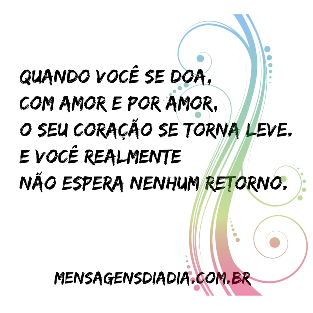Quando você se doa, com amor e por amor, o seu coração se torna leve. E você realmente não espera nenhum retorno.