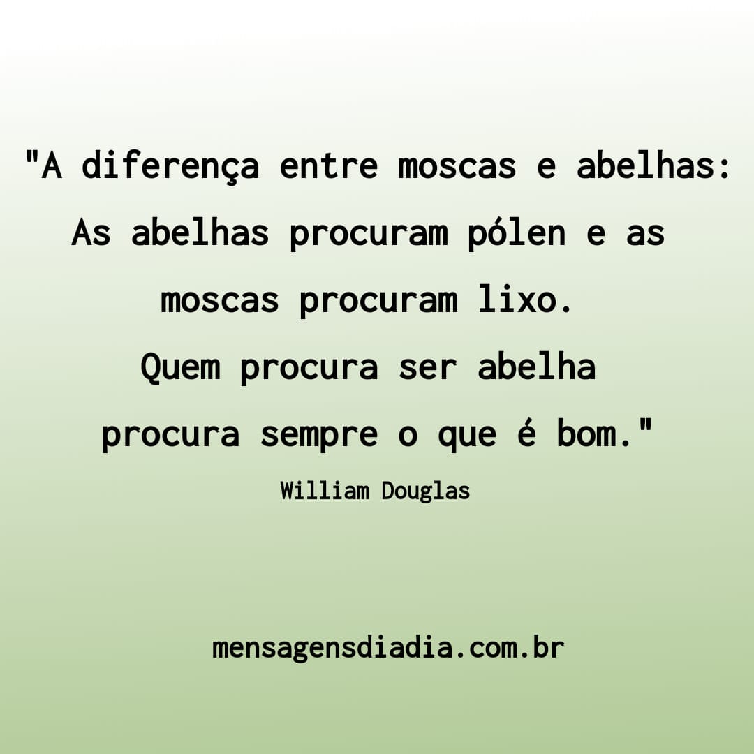 “A diferença entre moscas e abelhas: As abelhas procuram pólen e as moscas procuram lixo. Quem procura ser abelha procura sempre o que é bom.”
