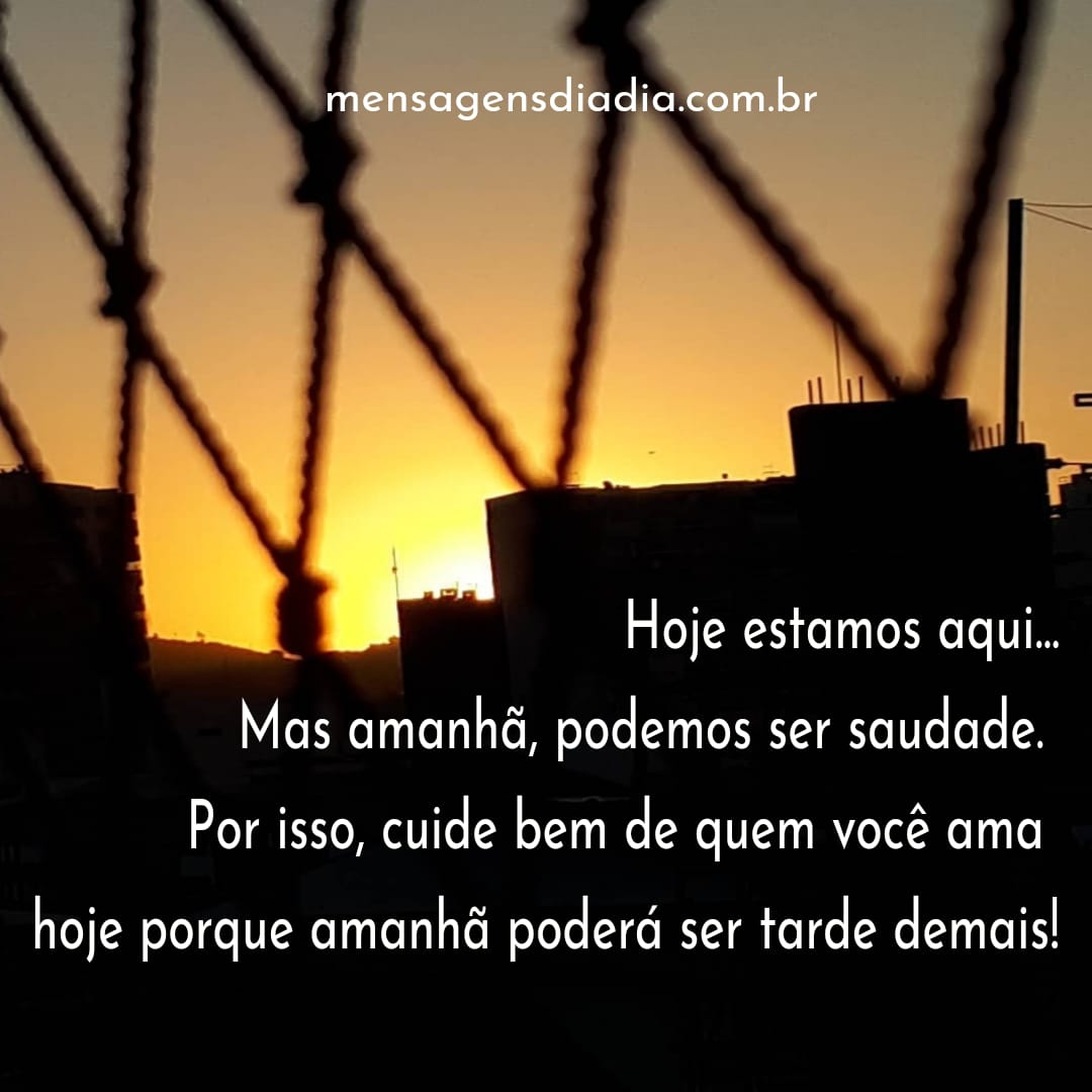 Hoje estamos aqui… Mas amanhã, podemos ser saudade. Por isso, cuide bem de quem você ama hoje porque amanhã poderá ser tarde demais!