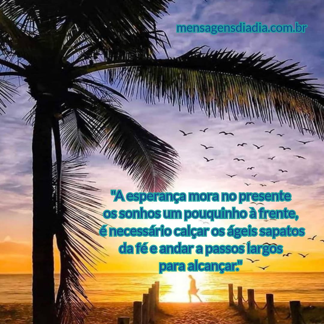 Esperança “A esperança mora no presente, os sonhos um pouquinho à frente, é necessário calçar os ágeis sapatos da fé e andar a passos largos para Ler mais »
