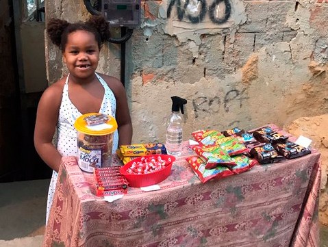 Nanda Alves ressaltou que a menina estava protegida durante o tempo que ficou na barraquinha e tirou a máscara somente para fazer a foto A