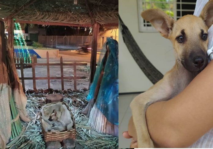 Uma cena comovente e ao mesmo tempo surpreendente. Uma moradora de Inhuma, no Piauí, encontrou uma cadelinha dormindo na manjedoura de um presépio numa praça