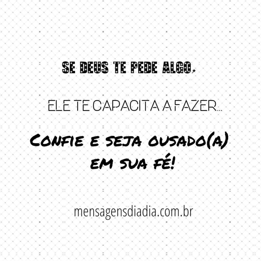 Se Deus te pede algo, Ele te capacita para fazer……….Confie e seja ousado(a) em sua fé!