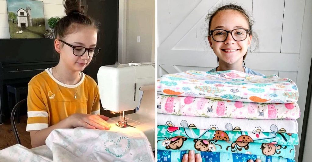 Menina de 11 anos produz milhares de máscaras e centenas de cobertores para crianças de baixa renda
