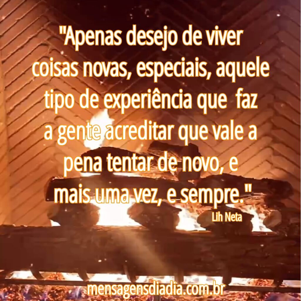 “Apenas desejo de viver coisas novas, especiais, aquele tipo de experiência que faz a gente acreditar que vale a pena tentar de novo, e mais uma vez, e sempre.”