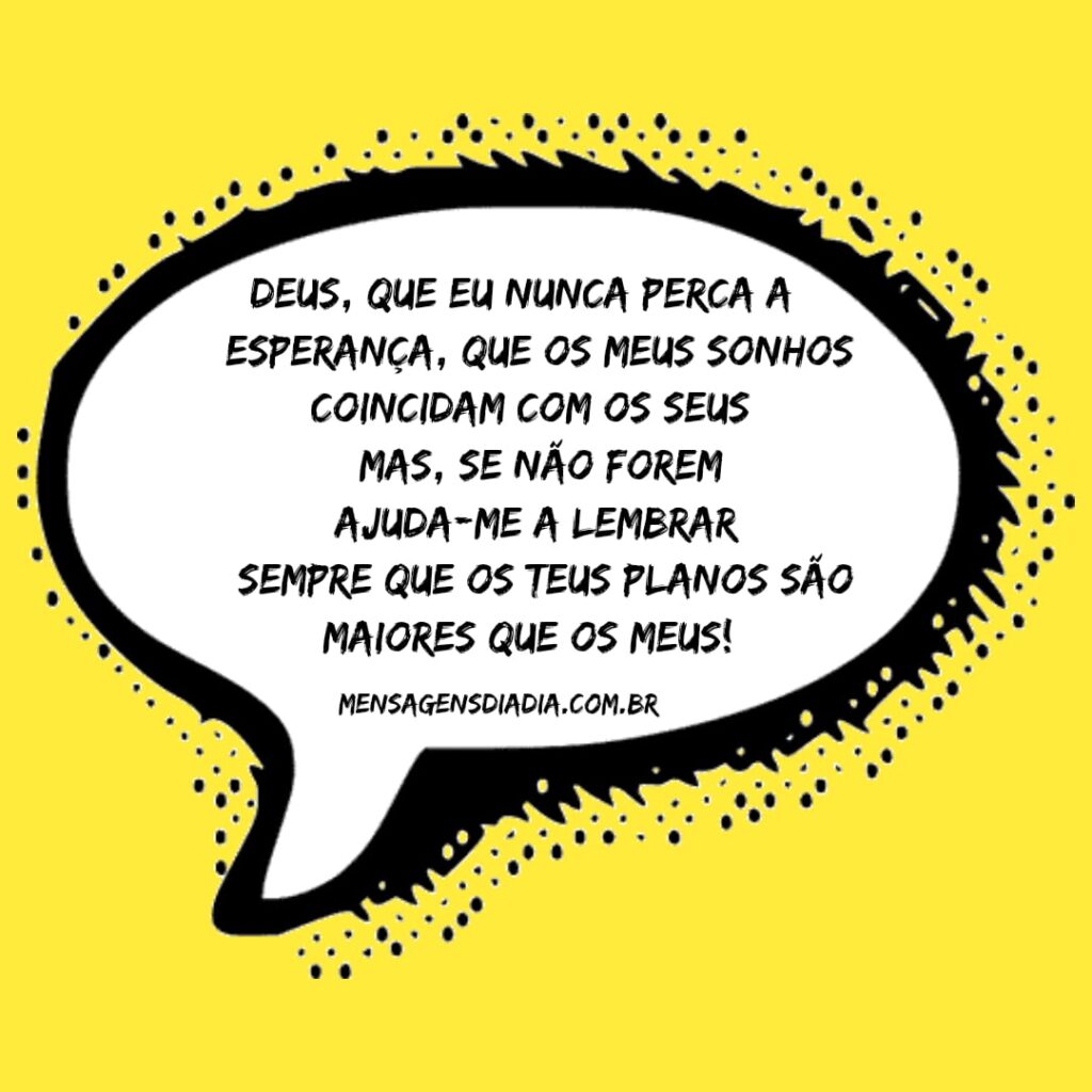 Deus, que eu nunca perca a esperança, que os meus sonhos coincidam com os seus mas, se não forem ajuda-me a lembrar sempre que os teus planos são maiores que os meus!