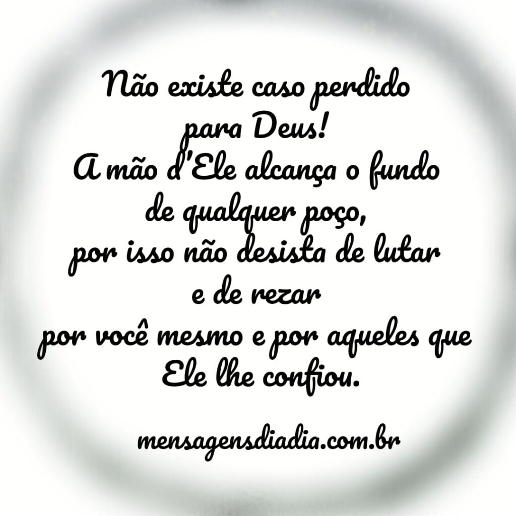 Não existe caso perdido para Deus! A mão D’Ele alcança o fundo de qualquer poço, por isso não desista de lutar e de rezar por você mesmo e por aqueles que Ele lhe confiou.