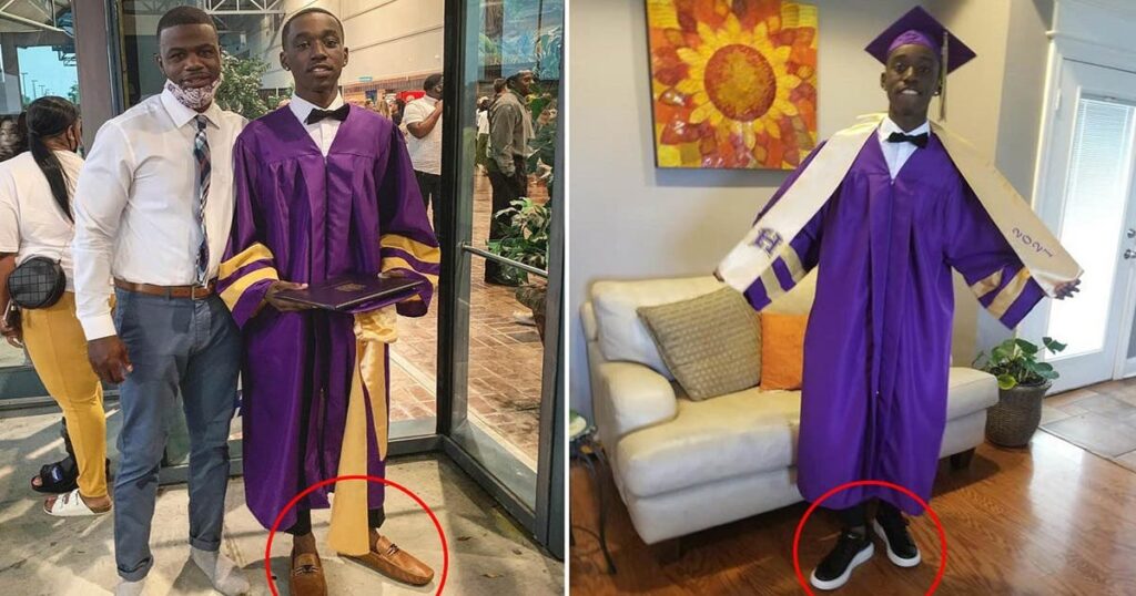 “Então, eu apenas os calcei como chinelos”, disse Peters. Ele disse à CBS News que, naquele momento, “senti a alegria. O dia todo, mal podia esperar para as 6 horas, mal podia esperar para me preparar para a formatura no palco.”