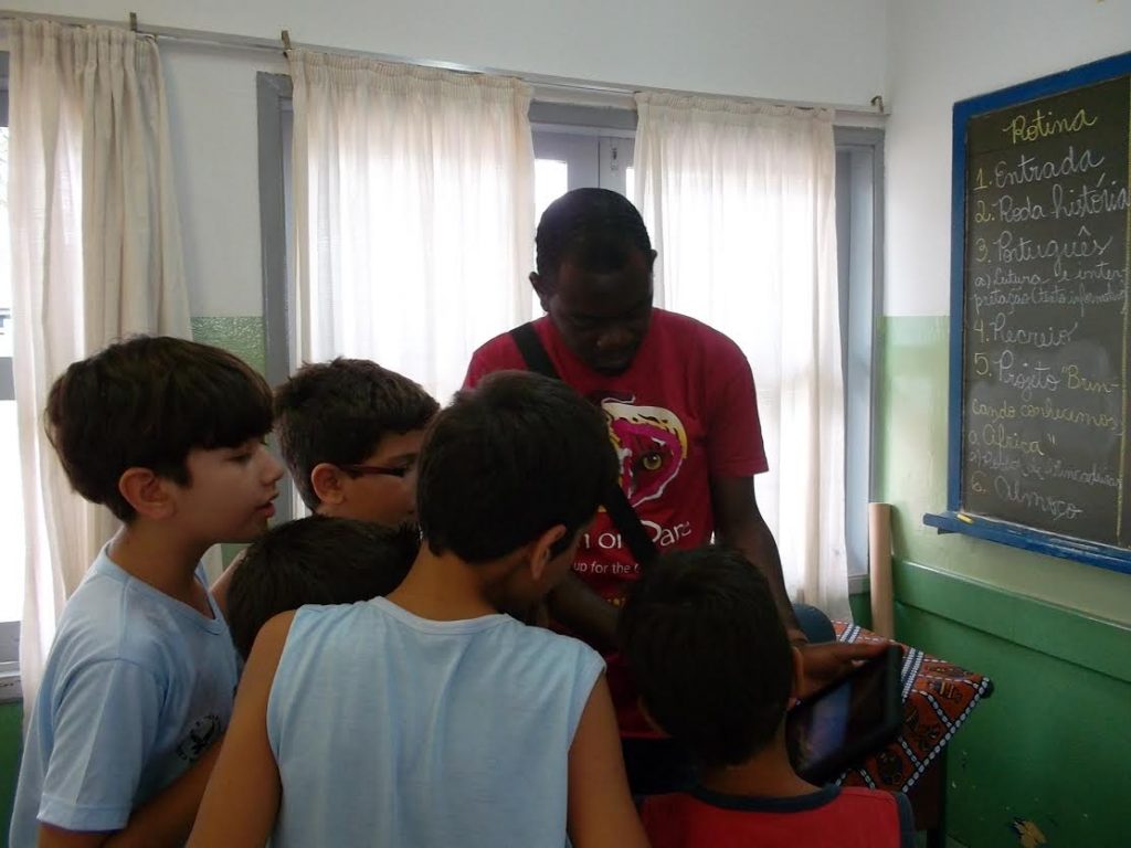Para iniciar o trabalho, a professora – também integrante do Núcleo de Estudos Afro-Brasileiros da Universidade Federal de São Carlos (Neab), fez contato com alguns estudantes africanos para pedir apoio. A ideia era convidá-los para ir à escola vivenciar o momento das brincadeiras com as crianças, ação que ainda seria acompanhada de outras atividades.