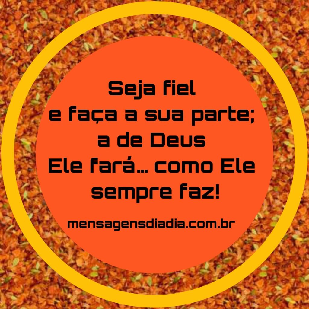 Seja fiel e faça a sua parte; a de Deus Ele fará……………………………como Ele sempre faz! Creia!